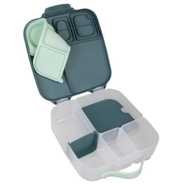 The custom divider slides across enabling parents to adjust the compartment size as they need, or remove it to fit a whole banana or wrap.