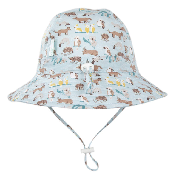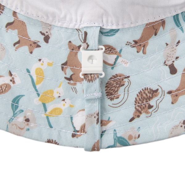 Celebrate the beauty of the Australian bush with this gorgeous bucket hat, featuring much-loved native animals including koalas, kookaburras, platypuses, cockatoos and more. The outside showcases this fun Aussie animals print, while the inside is finished with a classic chestnut and cream check. Both prints are original artworks by Melbourne artist Jacinta Weir from Two Little Ducklings.