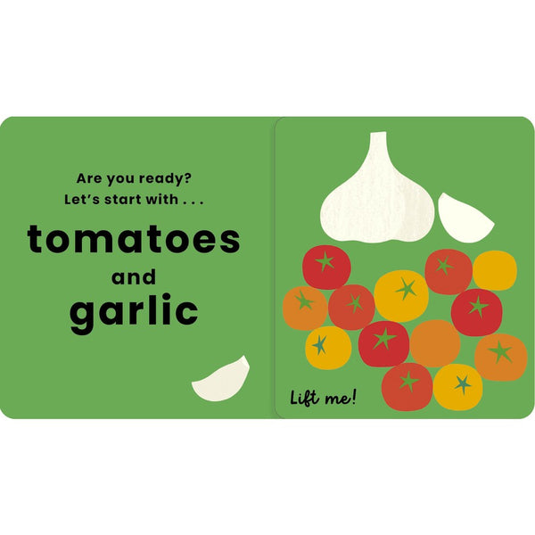 Every page of this sturdy board book features a new read-aloud word to see and say. Then, lift the flap to follow the action: squish the tomatoes, grate the cheese . . . In six simple steps you'll have made tomato pasta. Delicious!