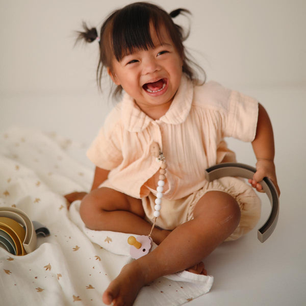 From our Danish hygge collection comes this playful rainbow stacker, inspired by the rainbow skywalk in Aarhus, Denmark. Little ones will sort, stack and play with this beautiful set, all while learning with soft colours and developing their fine motor skills.
