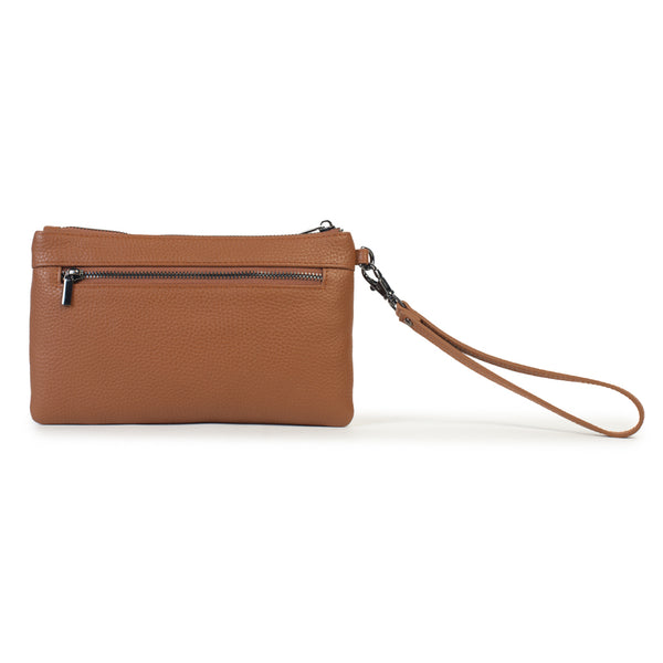 Dusky Robin Luxe Collection Bethany Zip Clutch - Pebbled Tan