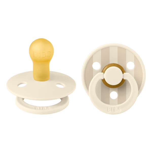 BIBS Colour pacifier is the original BIBS pacifier and has been on the market for over 40 years. It has the signature round BIBS shield with three vent holes and round BIBS engraved handle ring.