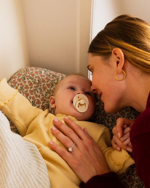 BIBS Colour pacifier is the original BIBS pacifier and has been on the market for over 40 years. It has the signature round BIBS shield with three vent holes and round BIBS engraved handle ring.
