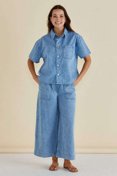 The Saffra Relax Leg Jean blends classic denim feel with modern comfort through its elasticated waistband and relaxed fit. Mid-high rise and patch pockets add practicality to its elevated silhouette. These transeasonal jeans are an effortless way to stay comfortable and polished all day.