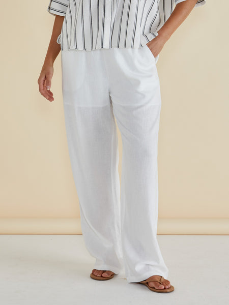 The Zaza Relax Pant is crafted from breathable viscose/linen blend fabric with an elasticated waistband and drawstring for an easy fit. Its wide leg and pockets create a sophisticated silhouette perfect for transeasonal wear. Comfortable and elevated, this pant is a timeless wardrobe essential.