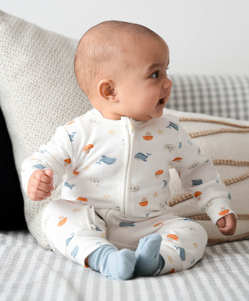 Two-way zip for easy dressing and fast nappy changes