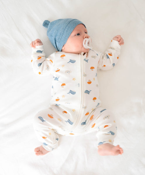 Our growsuits are both functional and beautiful, we source only the finest GOTS certified Organic Cotton to ensure we are providing your baby with nothing but the best. Features a two-way zip and a safety fold for quick and easy dressing. Soft and stretchy, our growsuits are an easy-care, fuss-free option that’s easy to wear thanks to their modern, fitted style. Suitable for loungewear, daywear, birth announcements, or any occasion it may be, they make a great baby gift!