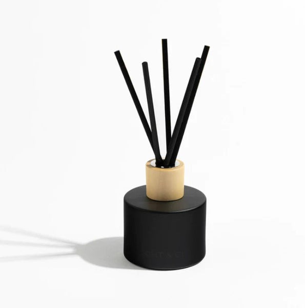 Masculine, modern and strong, our Noir collection has been beautifully curated to create an earthy, grounded vibe. This reed diffuser is an elegant and sophisticated way to scent your home. Instead of spraying or pouring liquid fragrances, you simply insert the natural reeds into the vessel that holds fragrance oils and they scent your room for up to 4 months without needing to flip the reeds.