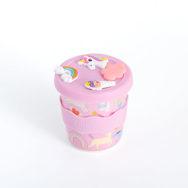 The cup includes 5 charms in total: 3 Unicorn Charms clip onto the lid and 2 charms including 1 custom Chino Cup charm are stored inside the cup. Kids can swap and play with their charms to make their cup uniquely theirs. These charms make the cup playful, interactive and more than just a drink container.
