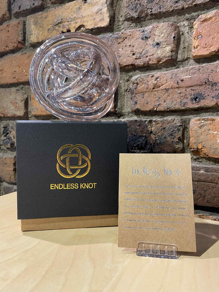 Show a friend how much you care with the unique gift of an Endless Knot! This stunning Endless Knot has been hand made and mouth blown to create a one of a kind piece, perfect for your one of a kind friend!
