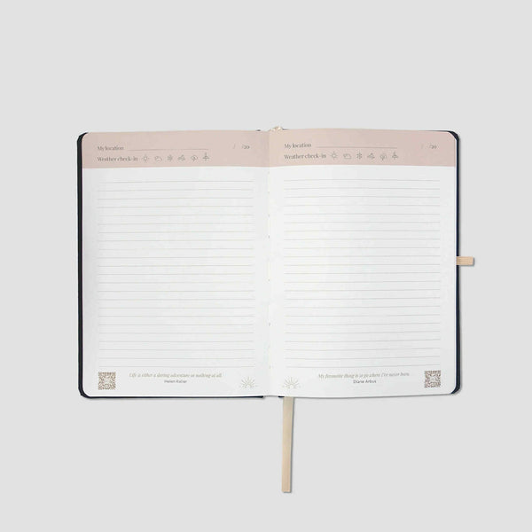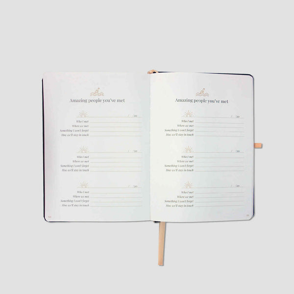 Bound in soft linen and printed on FSC-certified paper, this 172-page prompt-less journal gives you the space to write, sketch, or create however you like. Inside, you'll find 122 blank-lined pages for writing, 20 sketching and drawing pages for when words aren't enough, and six dedicated pages to remember the people you've met along the way. Each lined page features an inspiring quote to spark reflection and creativity as you journal.