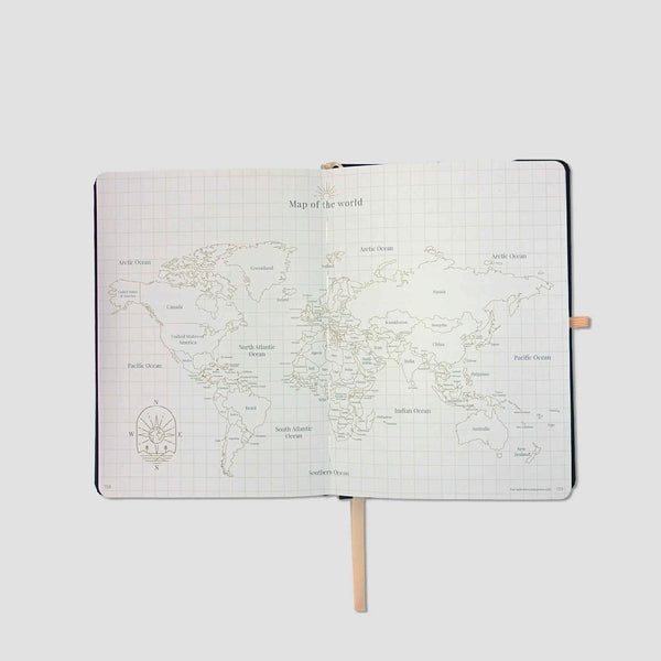 Complete with a map of the world, an inside pocket, elastic pen holder, page marker ribbon, and elastic closure, the Journalfy Freestyle Journal is thoughtfully designed for travellers, creatives, and anyone who loves to document life's moments in their own way.