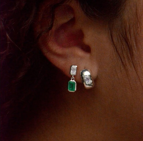 Stones: 2 x 6*4mm emerald cut green onyx gemstones & 2 x 5*3mm emerald cut lab-grown white sapphires