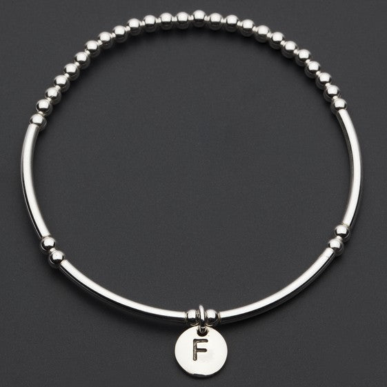 Silver beads and letter charm on stretch elastic with a 55mm diameter
