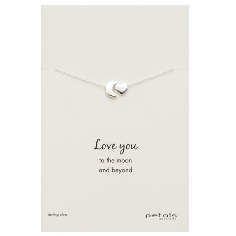 Petals Australia Sterling Silver Moon & Heart Necklace
