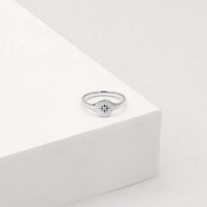 Linda Tahija North Star Diamond Signet Ring - 9K White Gold - Small