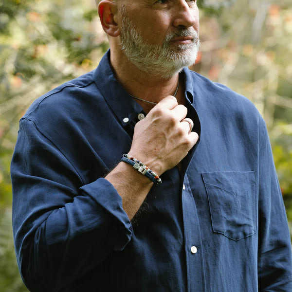 Discover the perfect balance between simplicity and style with the "Archie" bracelet. Made from high-quality Nappa leather, this 8 mm wide bracelet has a sleek design and a stylish, brushed silver clasp with the STEEL & BARNETT logo engraved on it. The clasp, made of durable 316L stainless steel, is strong, corrosion-resistant and equipped with a handy magnetic closure. Whether you're looking to complete a formal look or upgrade a casual outfit, the "Archie" bracelet always adds a touch of class.