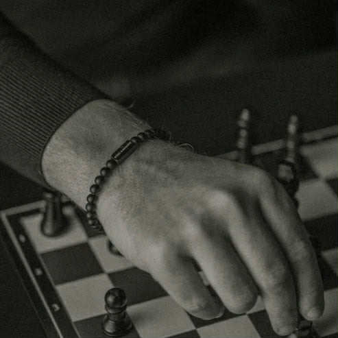 Smooth matte black stones like the midnight sky secured with an elegant, Matte Black Steel and Barnett clasp.