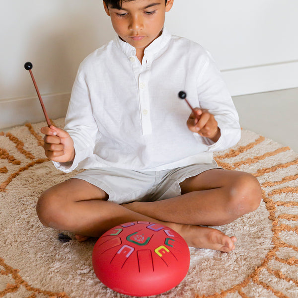Tambú is an invitation to delve into the world of music in the simplest and most exciting way. This innovative reed drum is specially designed for people of all ages to produce harmonious melodies instantly and without prior musical knowledge. Thanks to its colour and number coding system, Tambú offers significant advantages for children. Beyond being a mere toy, Tambú is a genuine educational and creative tool that facilitates intuitive learning and the memorization of notes and rhythms. Its methodology allows children to create music from the very beginning without feeling overwhelmed by theoretical complexity. Made with durable materials and available in a range of vibrant colours, Tambú is not only a musical instrument for beginners but also an elegant decorative piece for any space. Includes a practical carrying bag and sheet music.