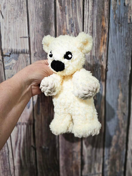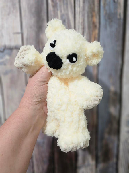 Made with chunky chenille yarn bobbles, has a stuffed head and a floppy body, making a perfect cuddly companion for your child.
