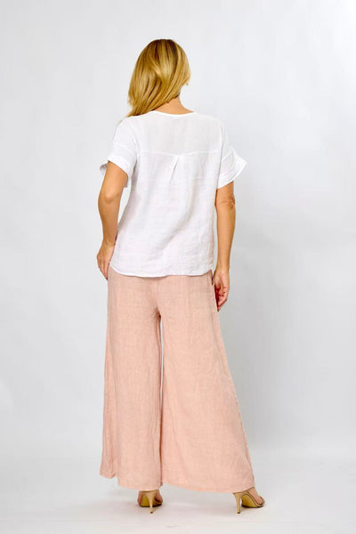 La Strada Collection Linen Mesh Shoulder Top - White