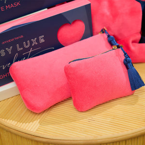 Purse your pennies in style with our Velvet Coin Purse. Perfect for loose change, credit cards or mini essentials when you're on the go. With the rise of electronic payments, sometimes it's the little things that really make a difference. Stay organised and stylish with this chic and compact coin purse. All colours come with a gorgeous pink and white stripe lining on the inside.